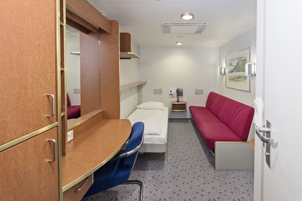 Our Polar outside cabins are situated mostly on middle or lower deck and all have bathrooms with shower/WC.These comfortable, refurbished cabins for up to two people on the middle decks have two single beds, one chair and desk, and a hairdryer.